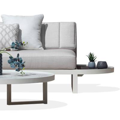 Cushions made with water-repellent tactile textile, have a Quickdry foam core, covered with a breathable waterproof layer. This carefully selected textile range is heavier (>400 gr/m2) and more textured, offering a softer hand and a luxury experience.